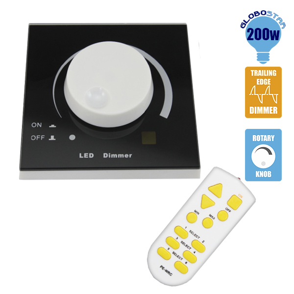 Με το Ασύρματο LED Dimmer Τοίχου Μαύρο 220v (200w) Trailing Edge GloboStar 50050 μπορούμε να αυξομειώσουμε την φωτεινότητα σε οποιοδήποτε LED Προϊόν 220 volt το οποίο χρειάζεται ροοστάτη.