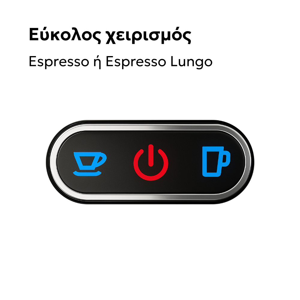 - Πολυμορφικότητα 3-σε-1: Περιλαμβάνει ειδικούς αντάπτορες για κάψουλες Nespresso®, Dolce Gusto® και ειδικό κλείστρο για αλεσμένο καφέ (espresso).