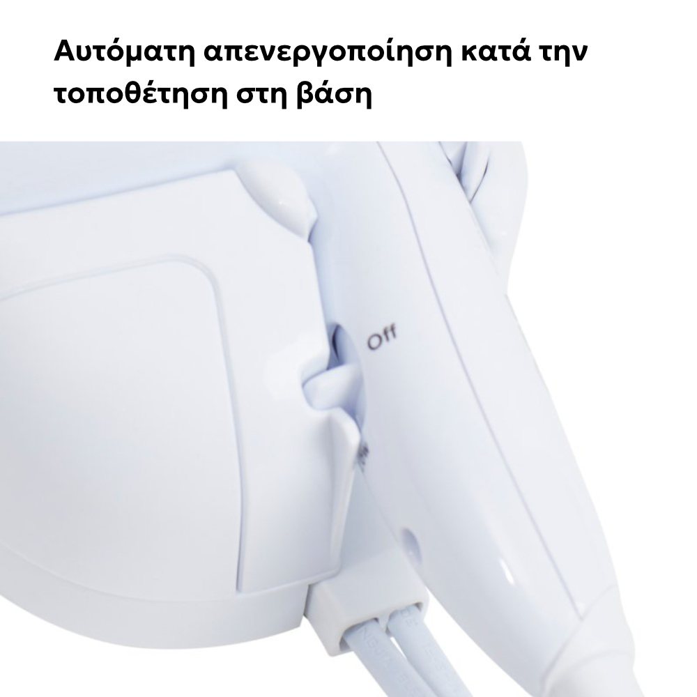 Με 2 επιλογές ταχύτητας και θερμοκρασίας, μπορείτε να προσαρμόσετε την απόδοσή του ανάλογα με τις ανάγκες σας. Το εύκαμπτο σπιράλ καλώδιο προσφέρει ευχέρεια κινήσεων και ευκολία στη χρήση, ενώ η εργονομική λαβή εξασφαλίζει άνετο κράτημα, ακόμα και για μεγαλύτερη διάρκεια χρήσης. Η επιτοίχια σχεδίαση το καθιστά ιδανικό για χώρους όπου η αποθήκευση και η εξοικονόμηση χώρου είναι σημαντικές, κάνοντάς το το τέλειο σεσουάρ για ξενοδοχεία, γυμναστήρια ή άλλους δημόσιους χώρους.