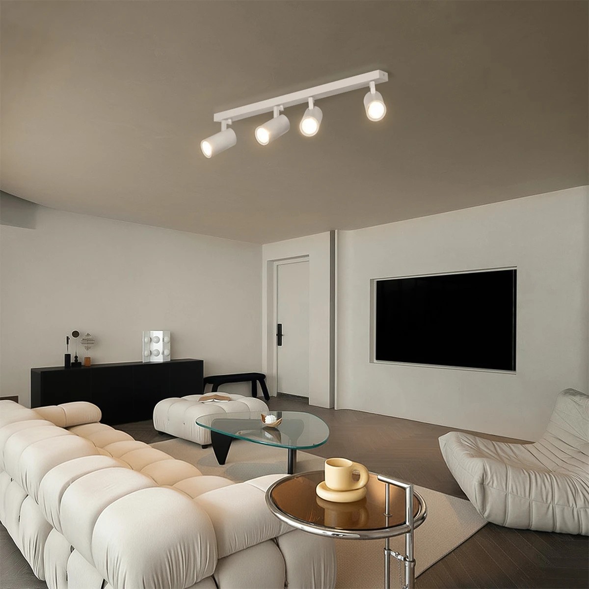 kelvo® SPOTA KLV-101-0141 Κινούμενο Φωτιστικό Σποτ Οροφής για 4 Λάμπες MR16 με Ντουί GU10 AC 220-240V IP20 – Λευκό Ματ – Μ64 x Π6 x Υ14cm