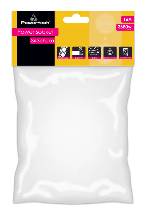 LEDTM πολύπριζο ασφαλείας PT-1055, 3x schuko, 16A, 1.4m, λευκό