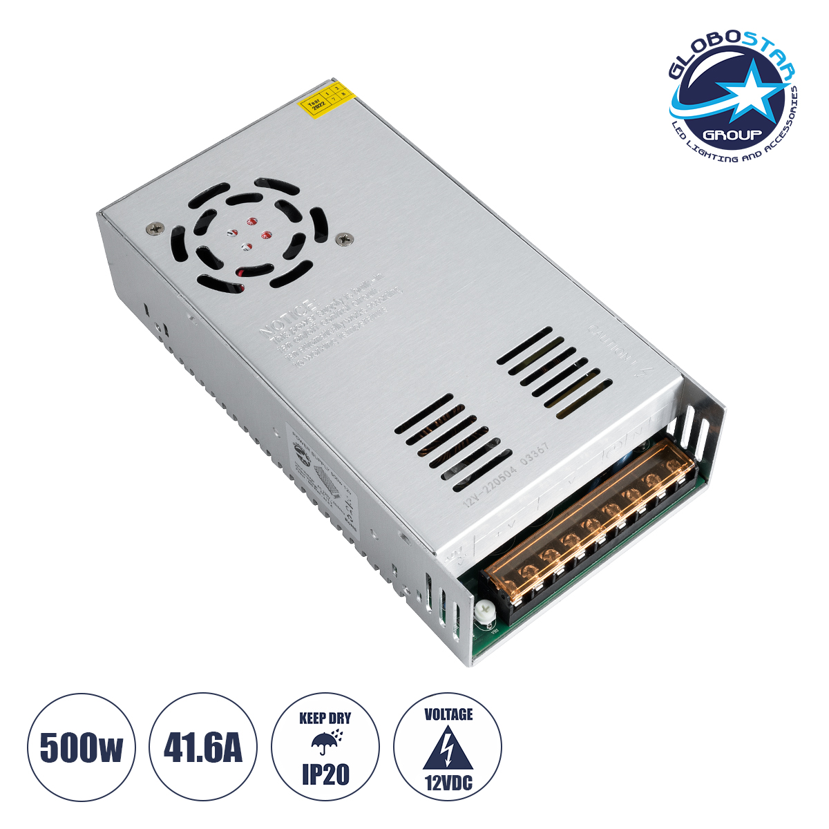 LEDTM® 73038 Μεταλλικό Τροφοδοτικό PELV για Προϊόντα LED 500W 41.6A – AC 220-240V σε DC 12V – IP20 Μ21 x Π11 x Υ5cm – 2 Χρόνια Εγγύηση