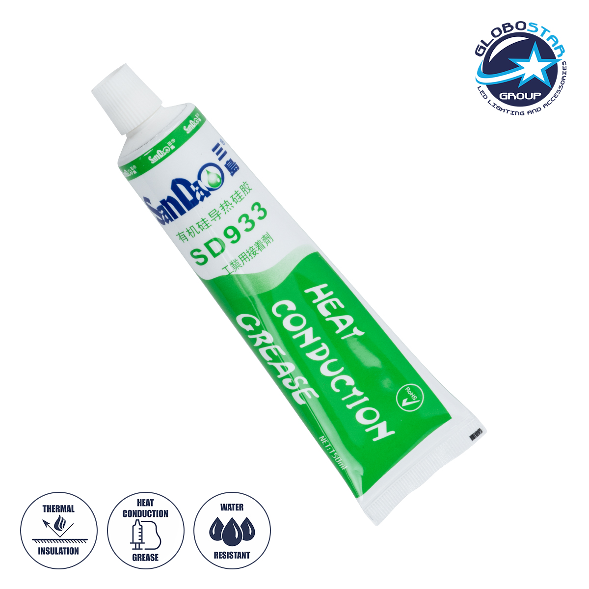 Η θερμική αγώγιμη σιλικόνη SD933 (το προϊόν είναι με διαφορετική συνοχή προϊόντος), είναι ένα είδος αλκοόλης τύπου σιλικόνης RTV ενός συστατικού, σχεδιασμένη για μονάδα LCD, έχει γρήγορη ταχύτητα σκλήρυνσης, ανώτερη απόδοση, ενιαίο συστατικό, σκλήρυνση σε θερμοκρασία δωματίου, υψηλή θερμότητα αντίσταση, καλή ρευστότητα, προστασία του περιβάλλοντος.
