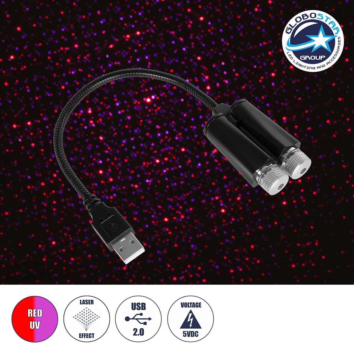 LEDTM® 81845-DUAL Διακοσμητικό Φωτιστικό Ειδικών Φωτορυθμικών Εφέ PARTY Disco LASER DC 5V με Καλώδιο Τροφοδοσίας USB Κόκκινο IP20 Μ3.5 x Π3.5 x Υ21.5cm