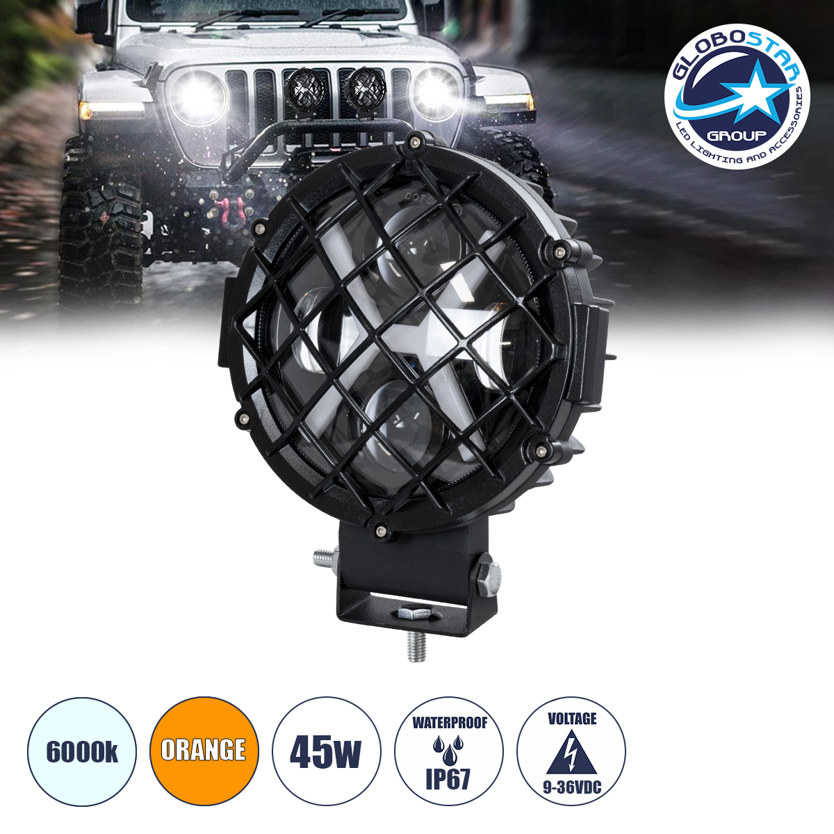 LEDTM® 85438 Vehicle & JEEP Work Lights – Φώτα Εργασίας για Οχήματα και JEEP με X Light DRL & Φλας LED High Power 45W DC 9-36V Αδιάβροχo IP67 Πορτοκαλί & Ψυχρό Λευκό 6000K M17 x Π8 x Υ21cm