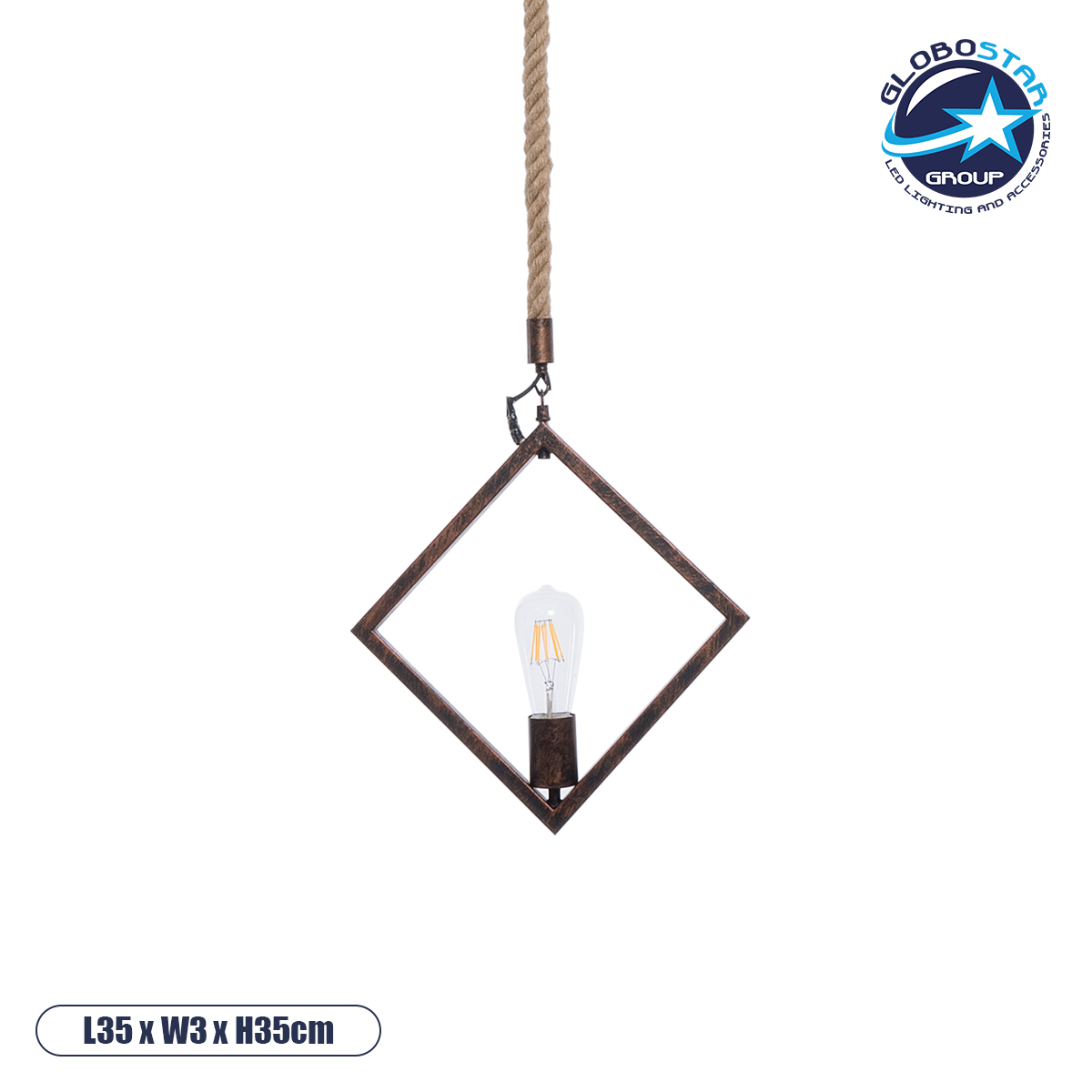LEDTM® ALCO 01023 Vintage Κρεμαστό Φωτιστικό Οροφής με Ντουί 1 x E27 AC 220-240V IP20 – Χάλκινο & Μπεζ – Μ35 x Π3 x Υ35cm