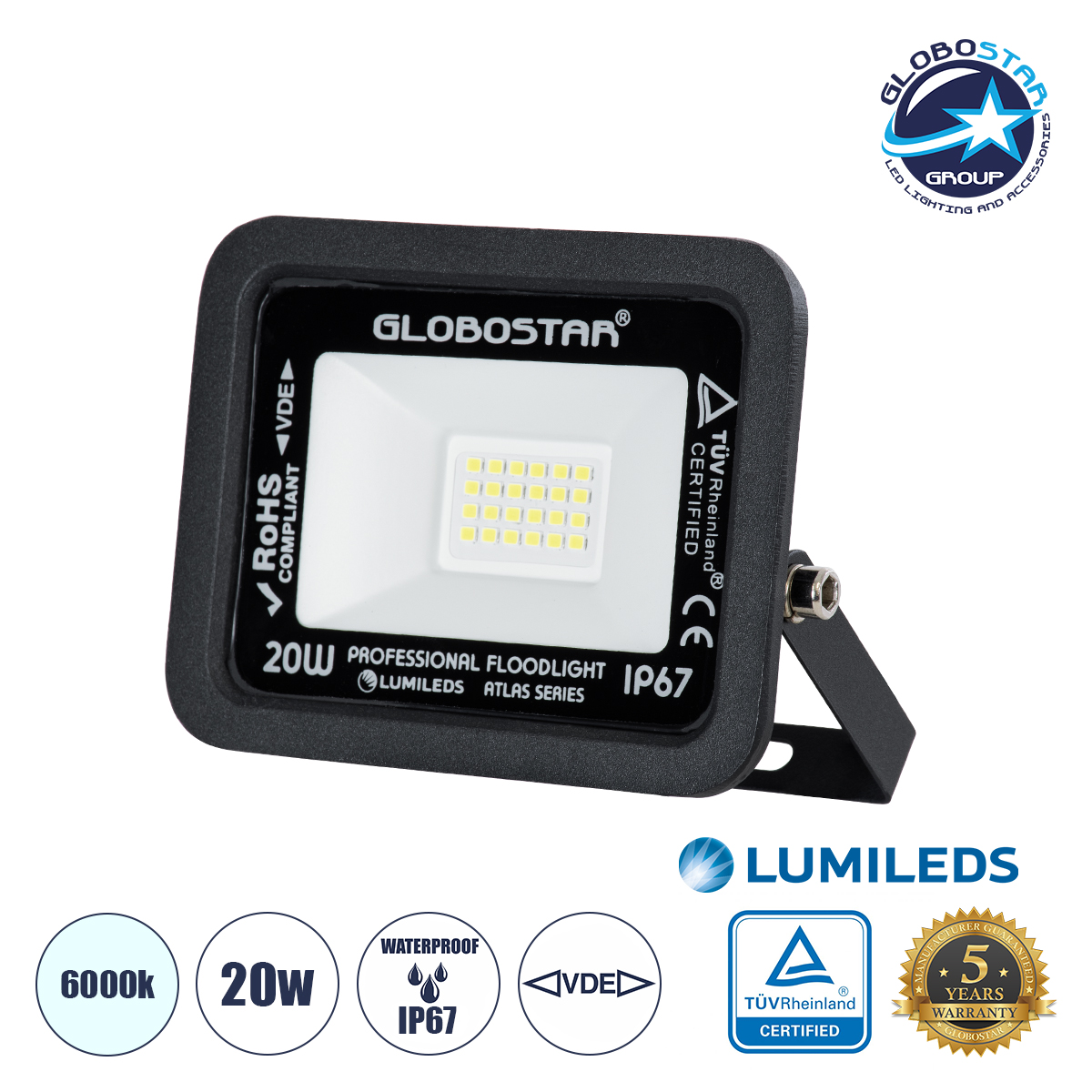 LEDTM® ATLAS 61410 Προβολέας LED 20W 2500lm 120° AC 220-240V Αδιάβροχο IP67 Ψυχρό Λευκό 6000K – Lumileds SMD Chip – TÜV Rheinland Certified – Μαύρο Ματ – Μ12 x Π2.5 x Υ9.5cm – 5 Χρόνια Εγγύηση