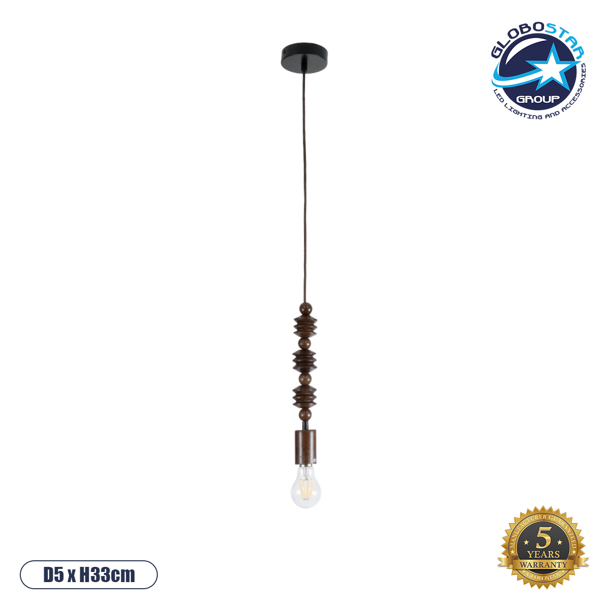 LEDTM® BEADS 00692 Vintage Κρεμαστό Φωτιστικό Οροφής με Ντουί 1 x E27 AC 220-240V IP20 – Καφέ – Μ5 x Π5 x Y33cm