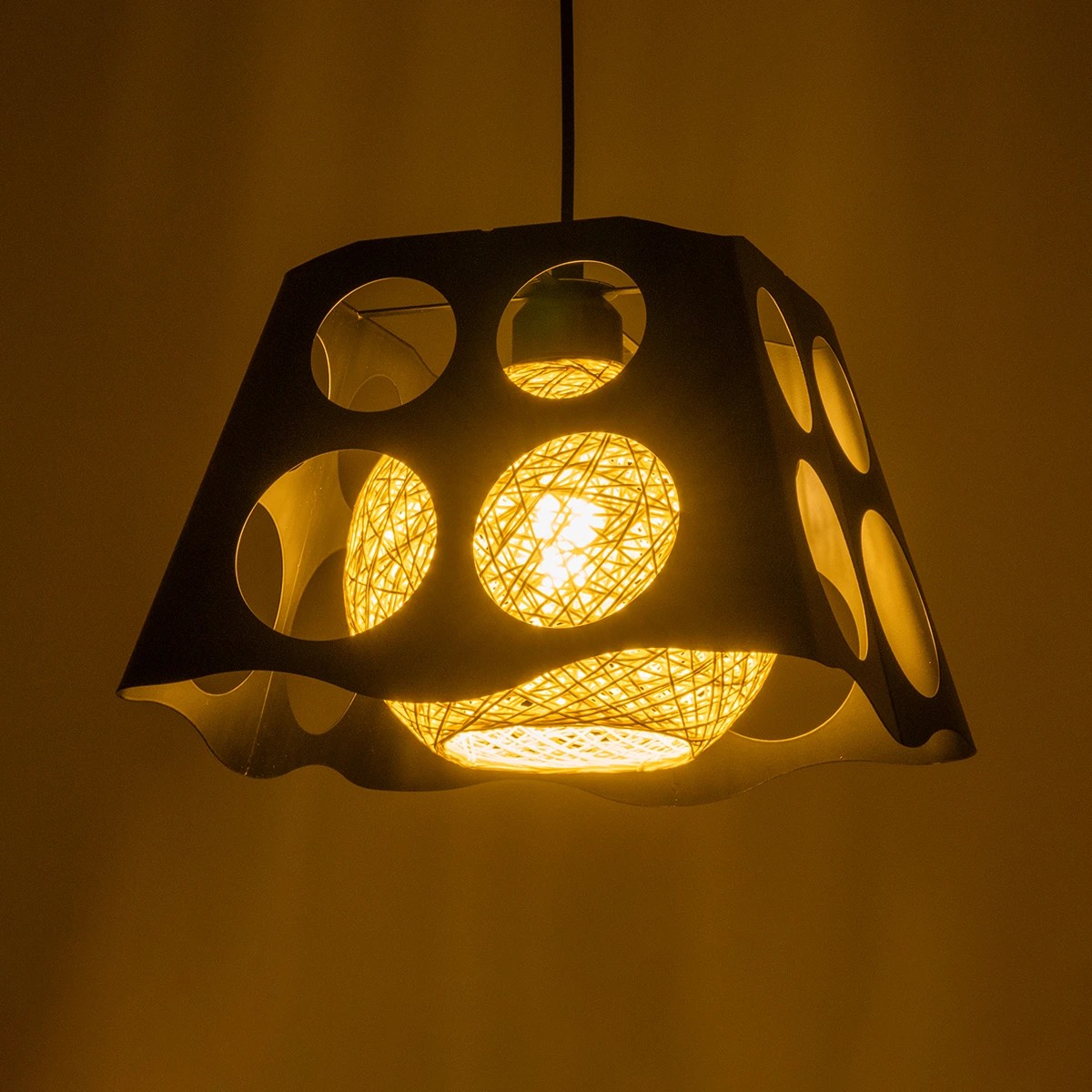 LEDTM® CARTER 00962 Μοντέρνο Κρεμαστό Φωτιστικό Οροφής με Ντουί 1 x E27 AC 220-240V IP20 – Μαύρο & Μπεζ – Μ28 x Π28 x Υ22cm