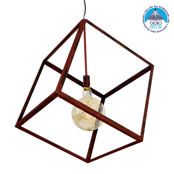LEDTM® CUBE 01673 Μοντέρνο Κρεμαστό Φωτιστικό Οροφής Μονόφωτο Καφέ Σκουριά Μεταλλικό Πλέγμα Μ70 x Π70 x Υ87cm