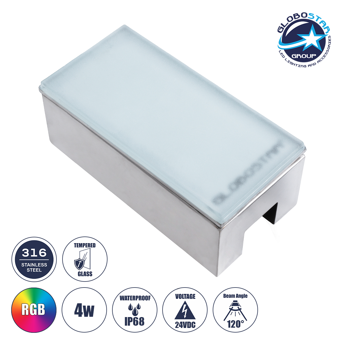 LEDTM® CYBOLITHOS 60953 Χωνευτό Αρχιτεκτονικο Φωτιστικό Σποτ Δαπέδου LED 4W 340lm 120° DC 24V Αδιάβροχο IP68 IK06 Πολύχρωμο RGB Dimmable - Bridgelux SMD Chip - Γαλακτερό Tempered Glass & Ανοξείδωτο Ατσάλι SS316 - Μ20 x Π10x Υ8cm / Q20 x 10cm - 3 Χρόνια Εγγύηση