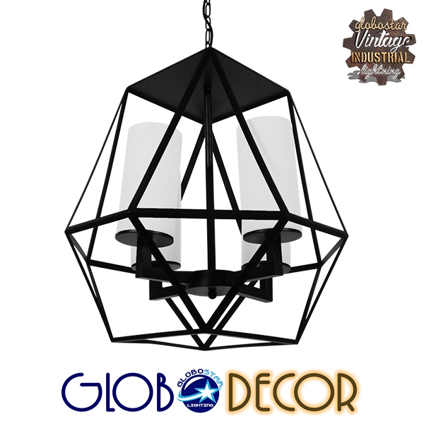 LEDTM® DASTAR 01001-1 Vintage Κρεμαστό Φωτιστικό Οροφής με Ντουί 4 x E27 AC 220-240V IP20 – Μαύρο & Λευκό – Μ52 x Π52 x Υ53cm