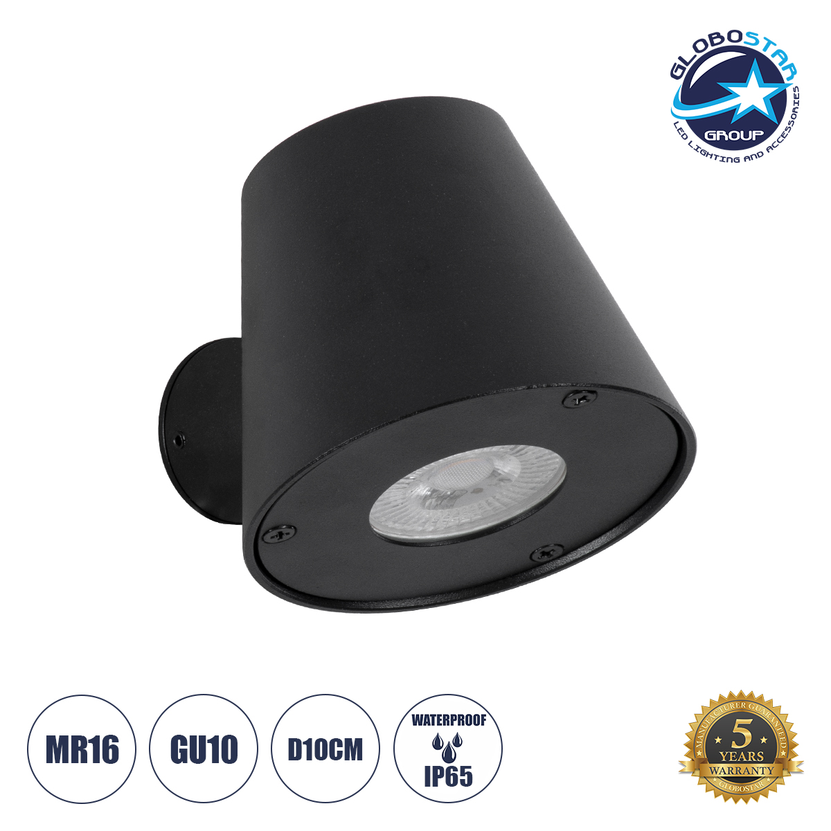 LEDTM® GARDENIA 60795 Μοντέρνο Φωτιστικό Τοίχου – Απλίκα με Ντουί 1 x GU10 AC 220-240V Αδιάβροχο IP65 – Μαύρο Ματ – Μ9.5 x Π13 x Υ7.7cm