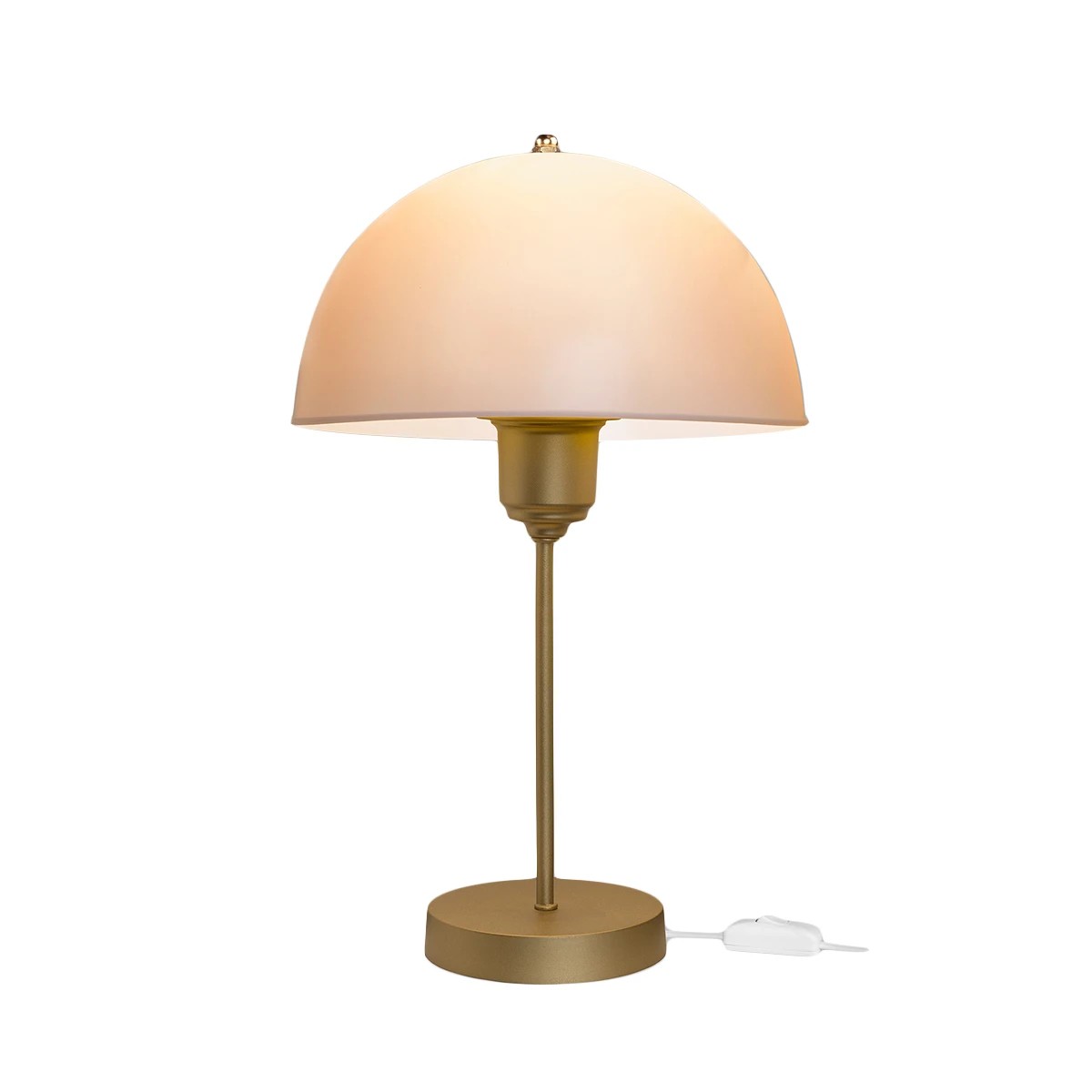 LEDTM® GAZETA 203-0304 Μοντέρνο Επιτραπέζιο Φωτιστικό Πορτατίφ με Ντουί 1 x E27 AC 220-240V IP20 – Λευκό Δίαφανο & Μπρονζέ – Μ25 x Π25 x Υ39cm
