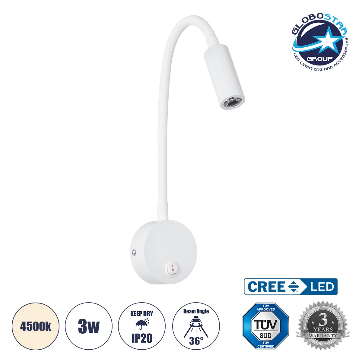 Θερμοκρασία Χρώματος : Φυσικό Λευκό 4500K