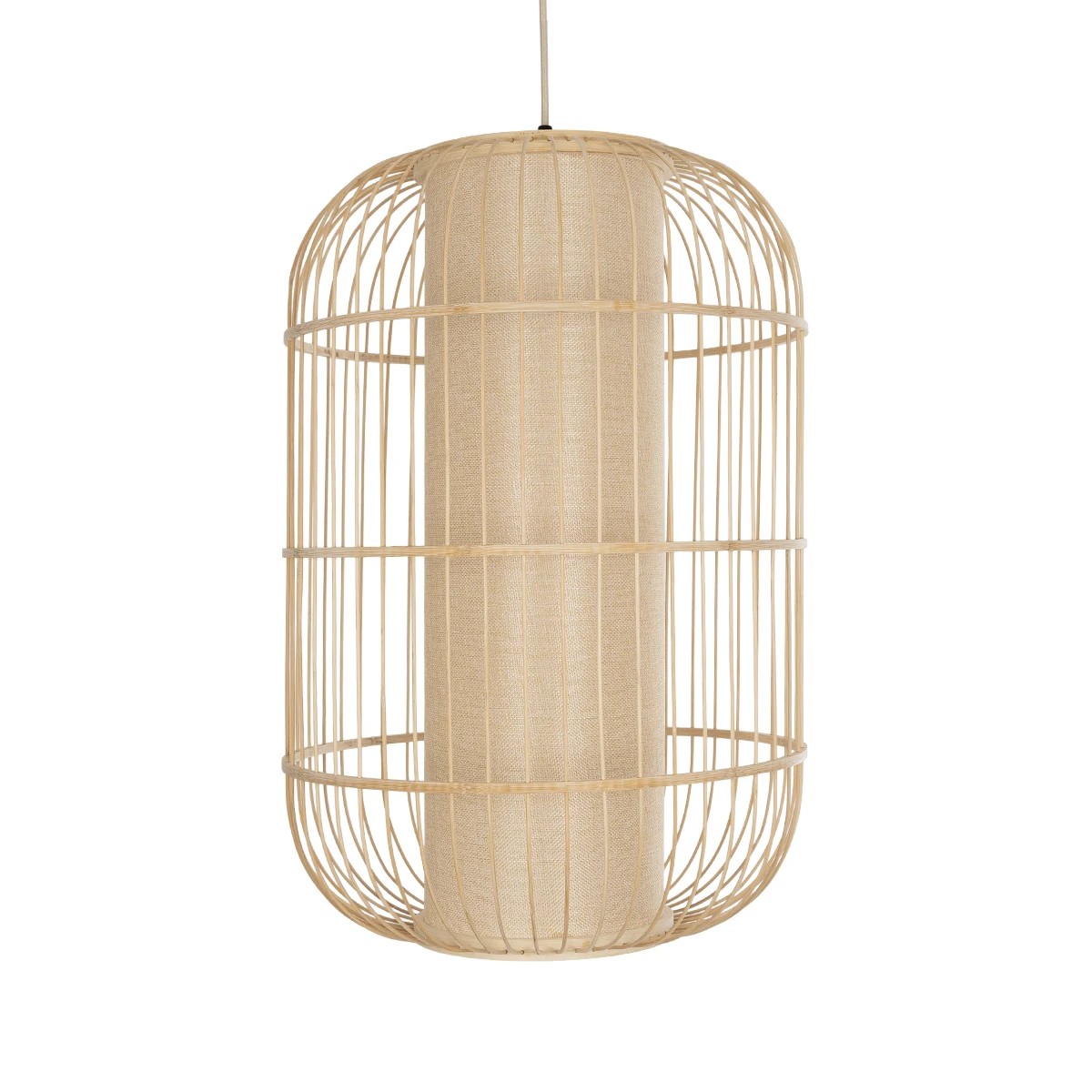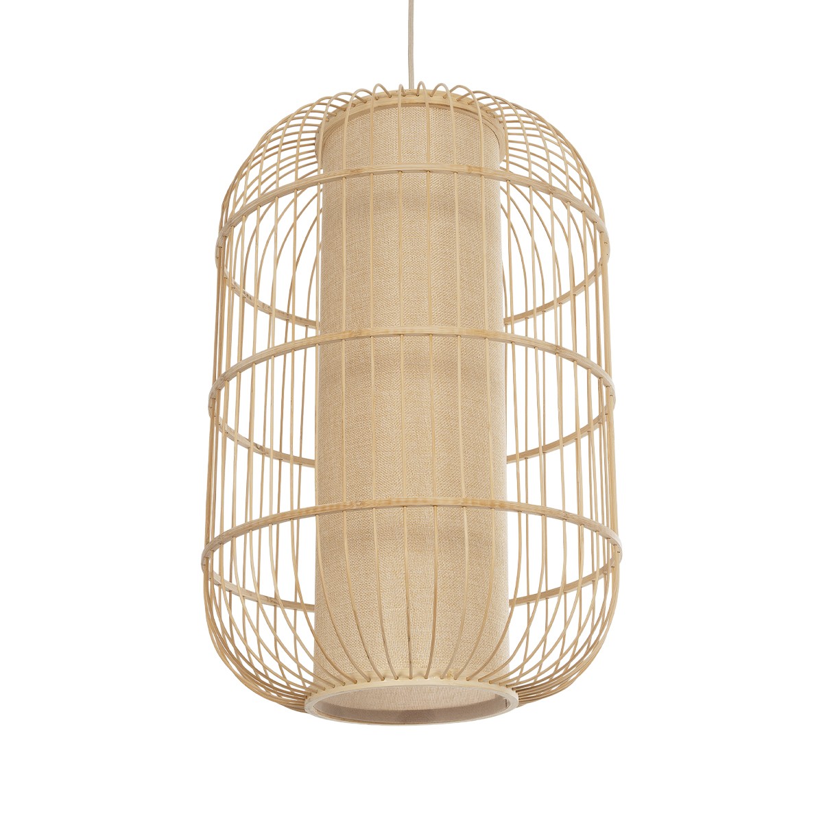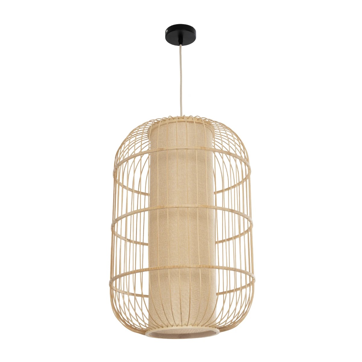 LEDTM® DE PARIS 00891 Vintage Κρεμαστό Φωτιστικό Οροφής Μονόφωτο Καφέ Ξύλινο Bamboo Φ40 x Υ60cm