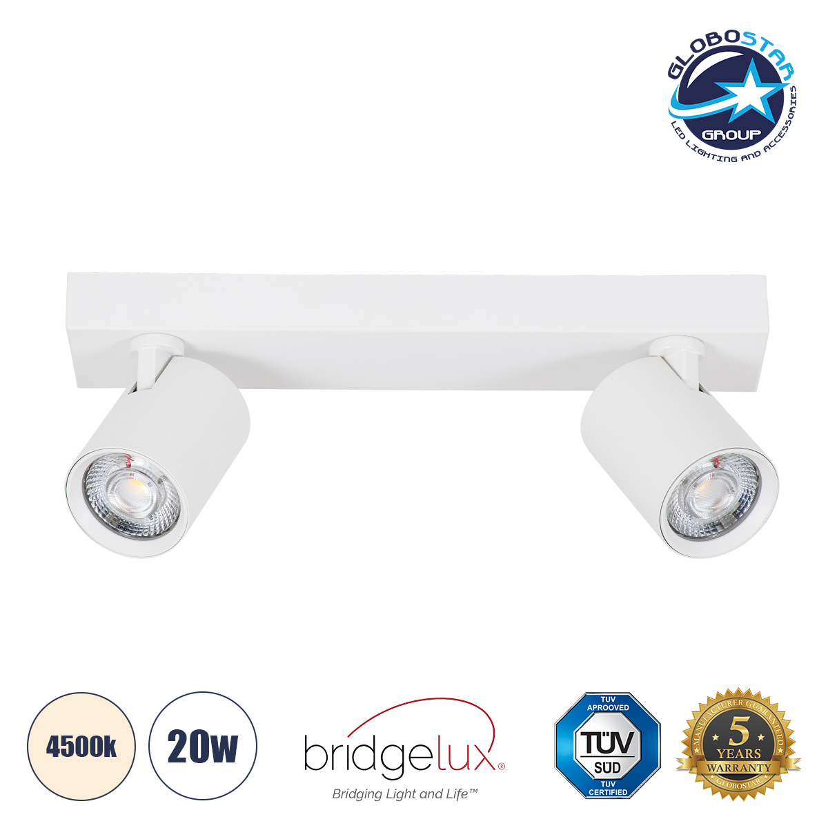 LEDTM® LEONARDO 60347 Μοντέρνο Φωτιστικό Οροφής LED 20W 2400lm 60° AC 220-240V IP20 Φυσικό Λευκό 4500K – Bridgelux COB – Λευκό – Μ32 x Π7 x Υ11.8cm – 5 Χρόνια Εγγύηση