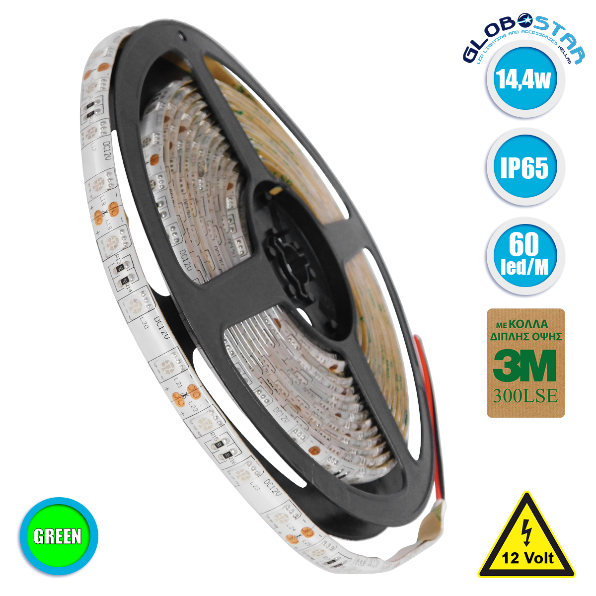 LEDTM® 70125 Ταινία LED SMD 5050 5m 14.4W/m 60LED/m 1454lm/m 120° DC 12V Αδιάβροχη IP65 Πράσινο – 5 Χρόνια Εγγύηση