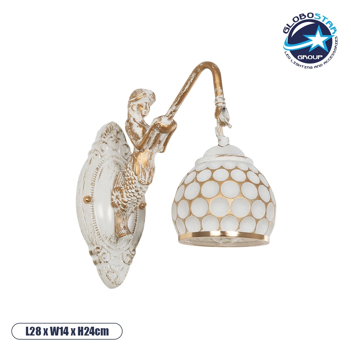 LEDTM® MERMAID 01317 Vintage Industrial Φωτιστικό Τοίχου Απλίκα Μονόφωτο Mπρούτζινο Μεταλλικό με Λευκό Ματ Γυαλί Φ12 x Μ28 x Π12.5 x Υ27cm