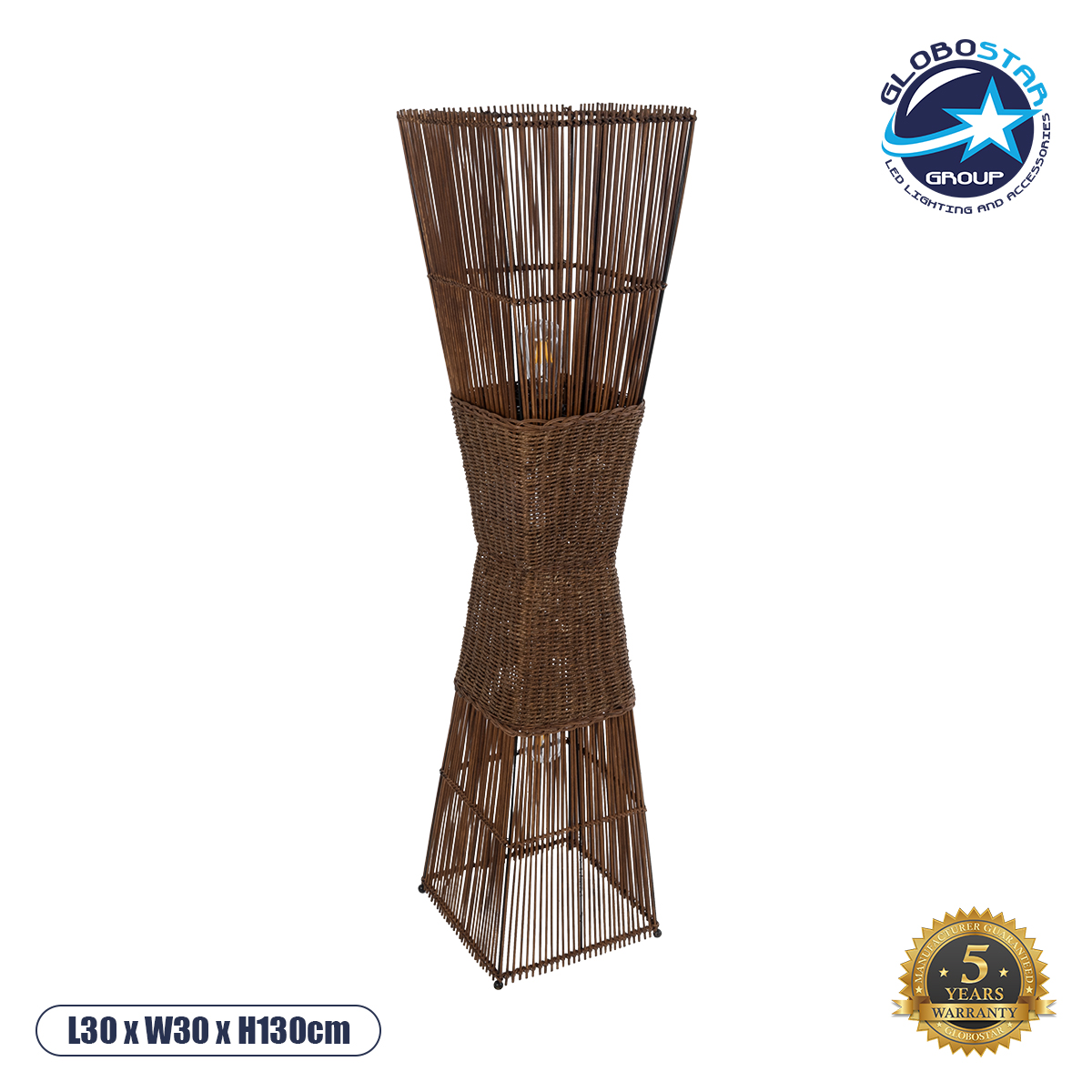 LEDTM® PALMA 02275 Boho Επιδαπέδιο Φωτιστικό με Ντουί 2 x E27 AC 220-240V IP20 – Καφέ – Μ30 x Π30 x Υ130cm