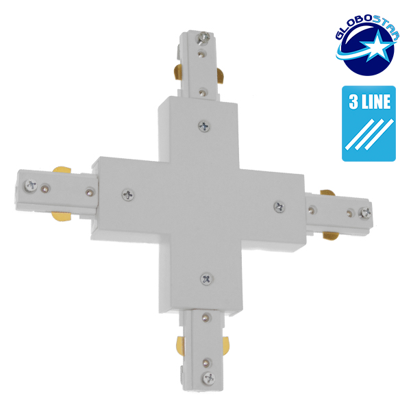Διφασικός Connector 3 Καλωδίων Συνδεσμολογίας Cross (+) για Λευκή Ράγα Οροφής LEDTM 93135