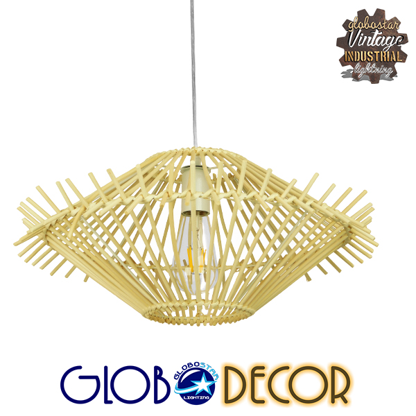 LEDTM® SASSO 01601 Vintage Κρεμαστό Φωτιστικό Οροφής Μονόφωτο Μπεζ Ξύλινο Ψάθινο Bamboo Φ50 x Υ23cm