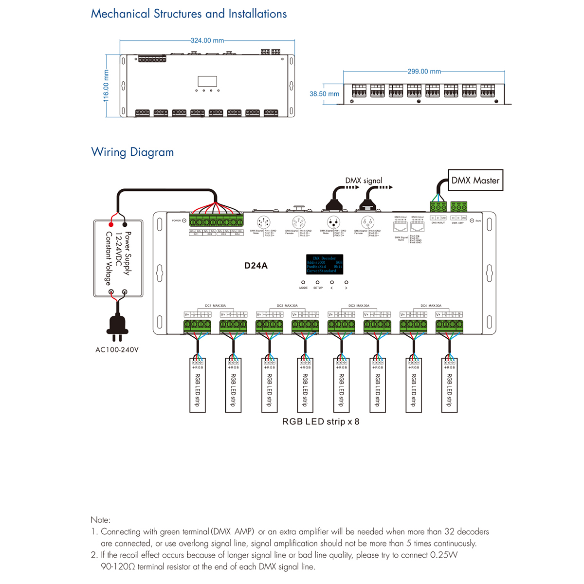 LEDTM® SKYDANCE-D24A 70673 DC DMX Master Dimmer / Controller / Decoder Υψηλής Ταχύτητας με 24 x 3A 72W Κανάλια DC 12-24V 72.5A 1740W Max IP20 - DMX512 & RDM - Μ16.7 x Π5 x Υ2.4cm - 5 Χρόνια Εγγύηση
