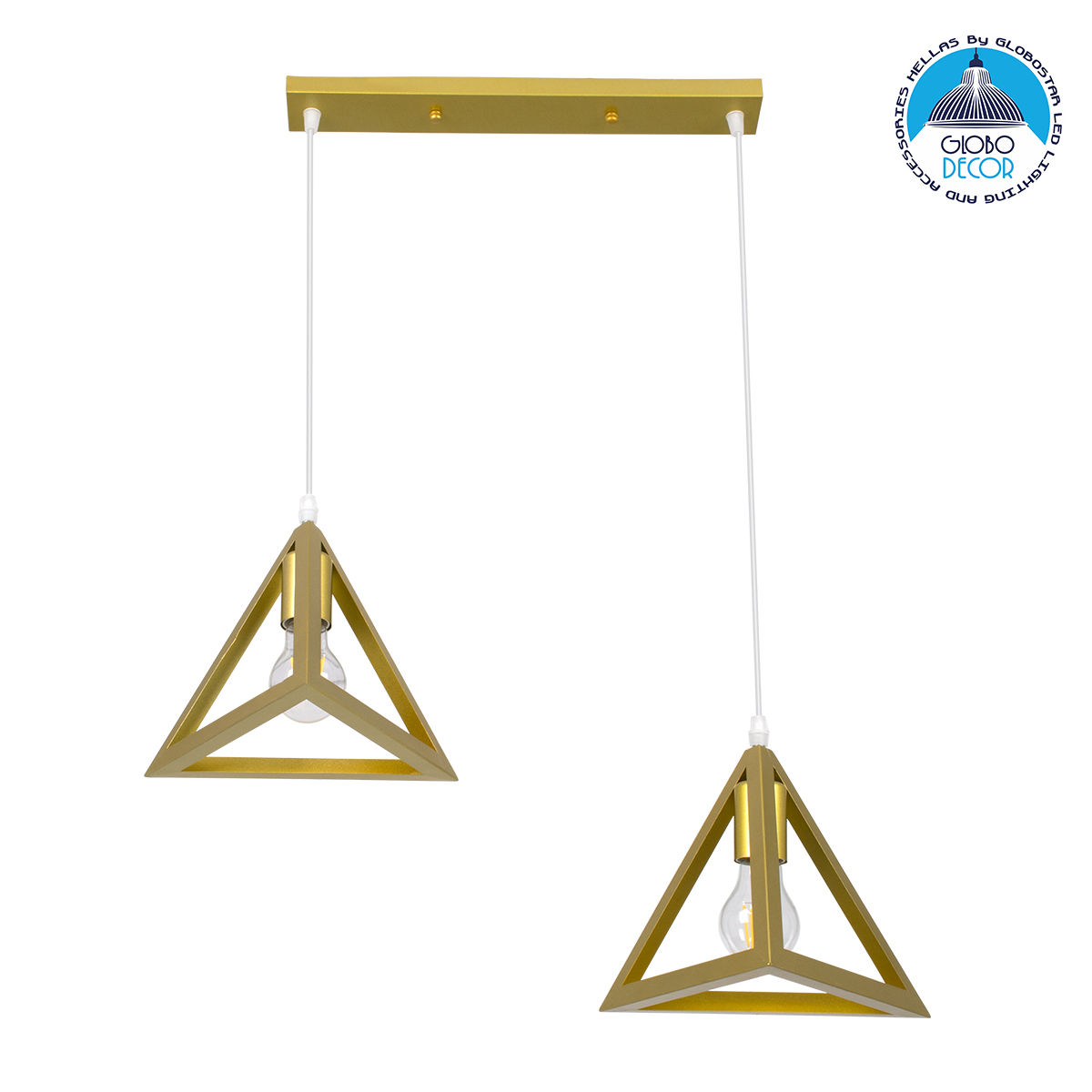LEDTM® TRIANGLE 00615 Μοντέρνο Κρεμαστό Φωτιστικό Οροφής με Ντουί 2 x E27 AC 220-240V IP20 – Χρυσό – Μ60 x Π22 x Y130cm