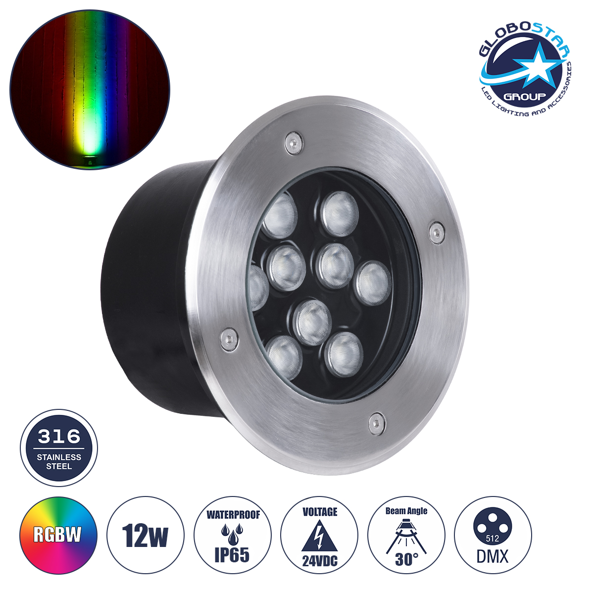 LEDTM® UNDERGROUNDTINA 90669 Χωνευτό Αρχιτεκτονικο Φωτιστικό Σποτ Δαπέδου LED 12W 1020lm 30° DC 24V Αδιάβροχο IP65 RGBW DMX512 Dimmable – Bridgelux SMD Chip – Ανοξείδωτο Ατσάλι SS304 – Μ16 x Π16 x Υ9cm / Q14cm – 3 Χρόνια Εγγύηση